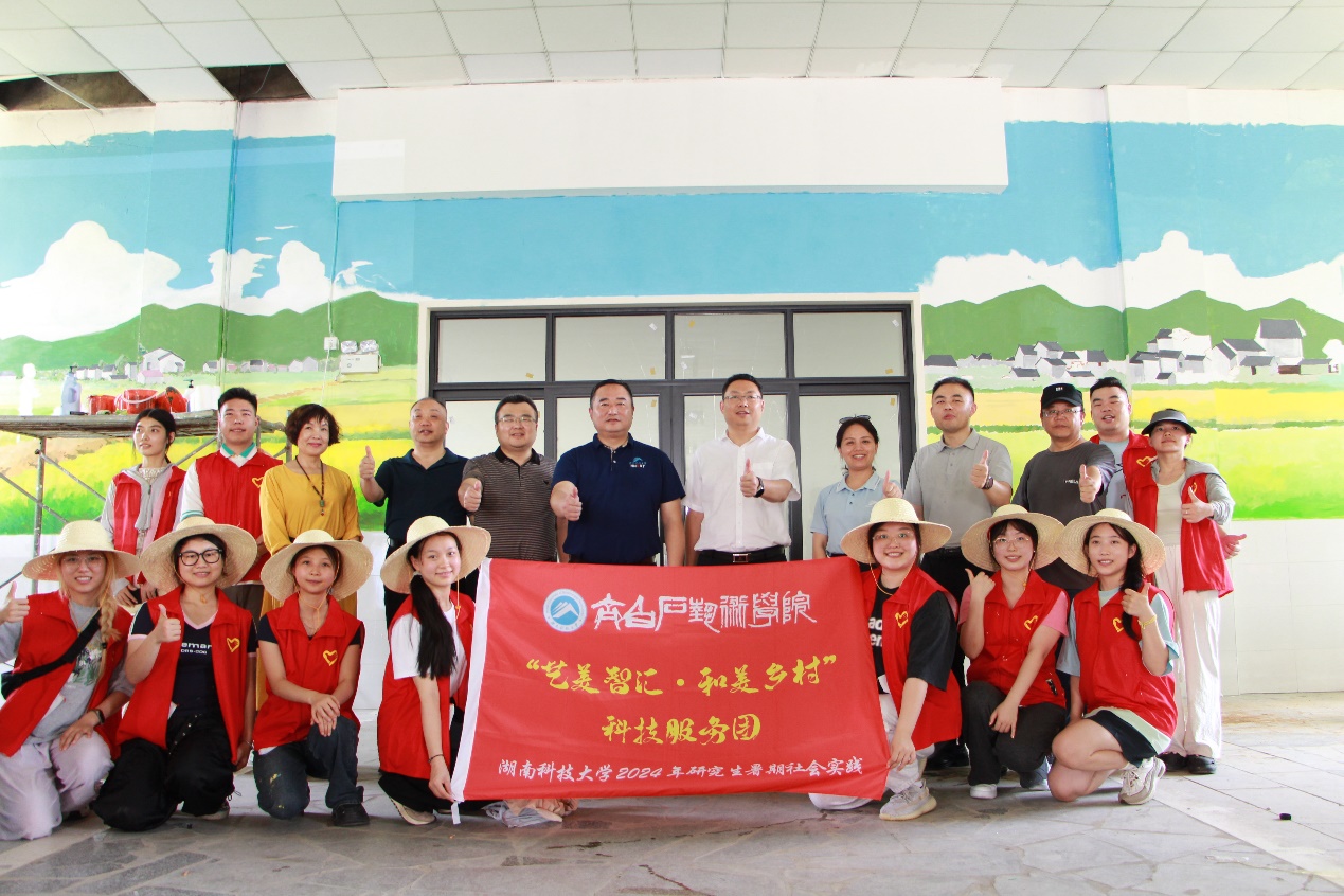 7月8日,湖南科技大学mg4355vip检测中心“艺美智汇·和美乡村”科技服务团深入鼎城区谢家铺镇国家现代产业园万亩示范区的核心区域现场采风,沿着总书记曾走过的田间小径,深入田间地头,收集了大量代表当地特色的创作元素,以研究生为主创的实践团墙绘创作组成员旨在通过墙绘这一艺术形式,以“美丽墙绘描底色,和美乡村入画来”为主题,展现谢家铺镇独特的自然风光、农耕文化及乡村振兴的丰硕成果。